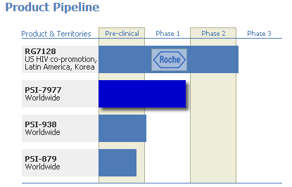 PSI-7851 is a mixture of two molecules of identical chemical composition, PSI-7976 and PSI-7977, which only differ in the stereo-orientation of one of the atoms. Once inside a liver cell, both molecules are rapidly converted to the same active triphosphate. Given the greater improvements in manufacturing and better in vitro potency, PSI-7977 was selected for further clinical development. A superior formulation in the form of a tablet has been developed and has recently been evaluated in a Phase 1 study in healthy volunteers. The 28 day Phase 2a trial using the improved manufacturing process and tablet formulation has now been initiated and interim results from this study are anticipated in the third quarter of 2010.